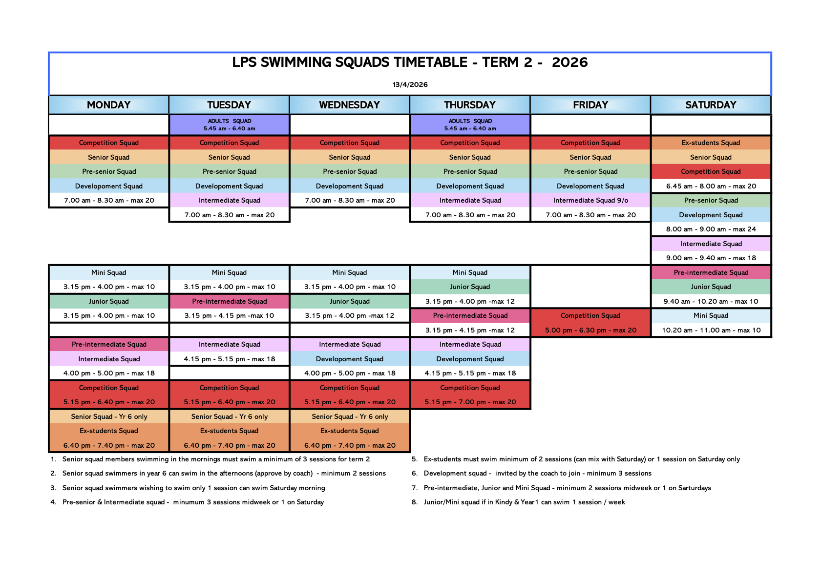 SQUAD TIMETABLE